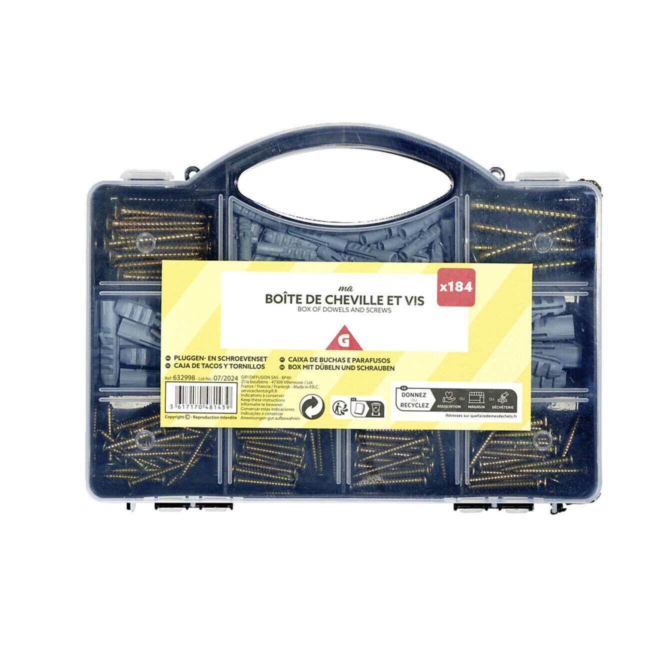 Boîte de 184 pièces de chevilles et vis