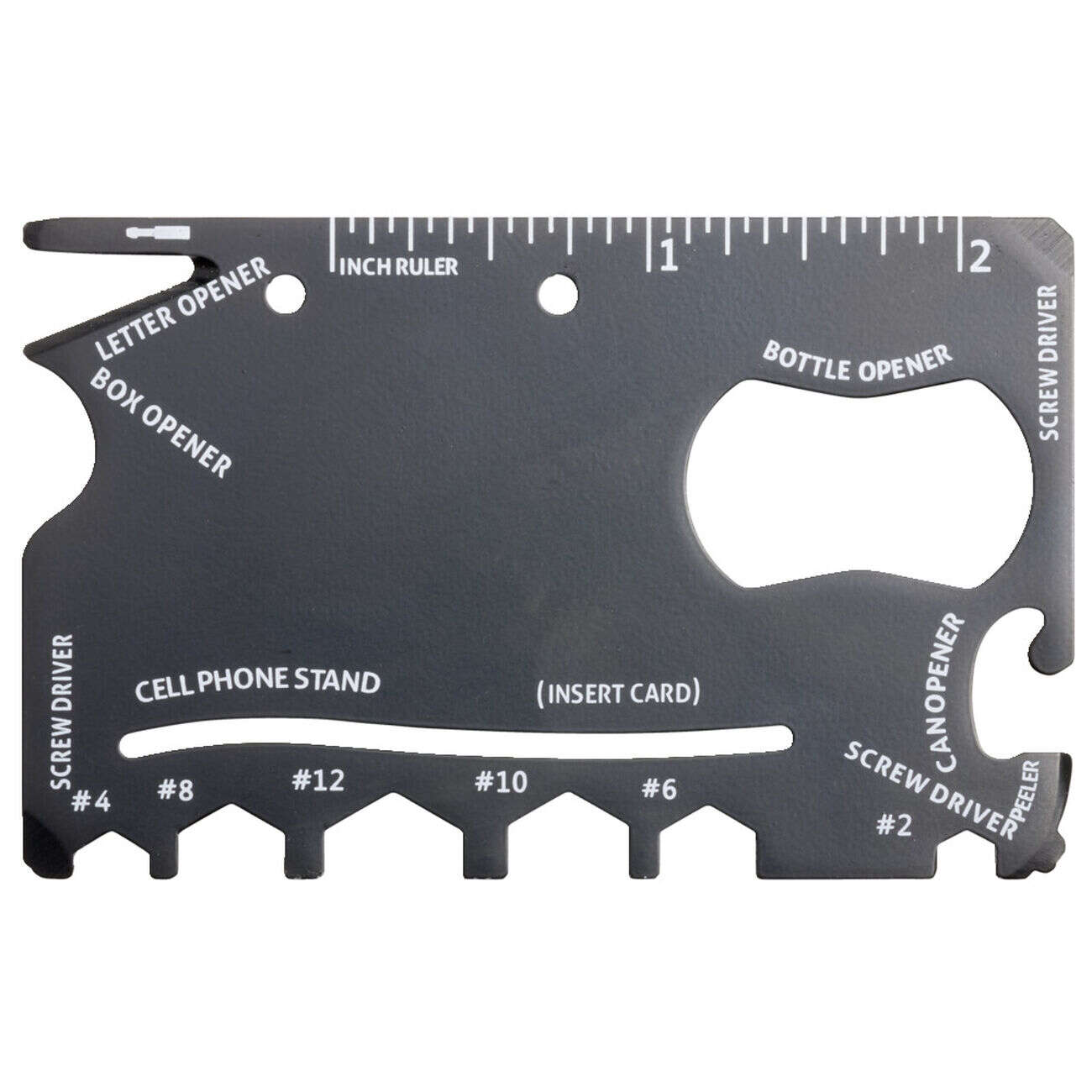 Carte d'outil multifonctions en métal noir 5,4x8,5cm
