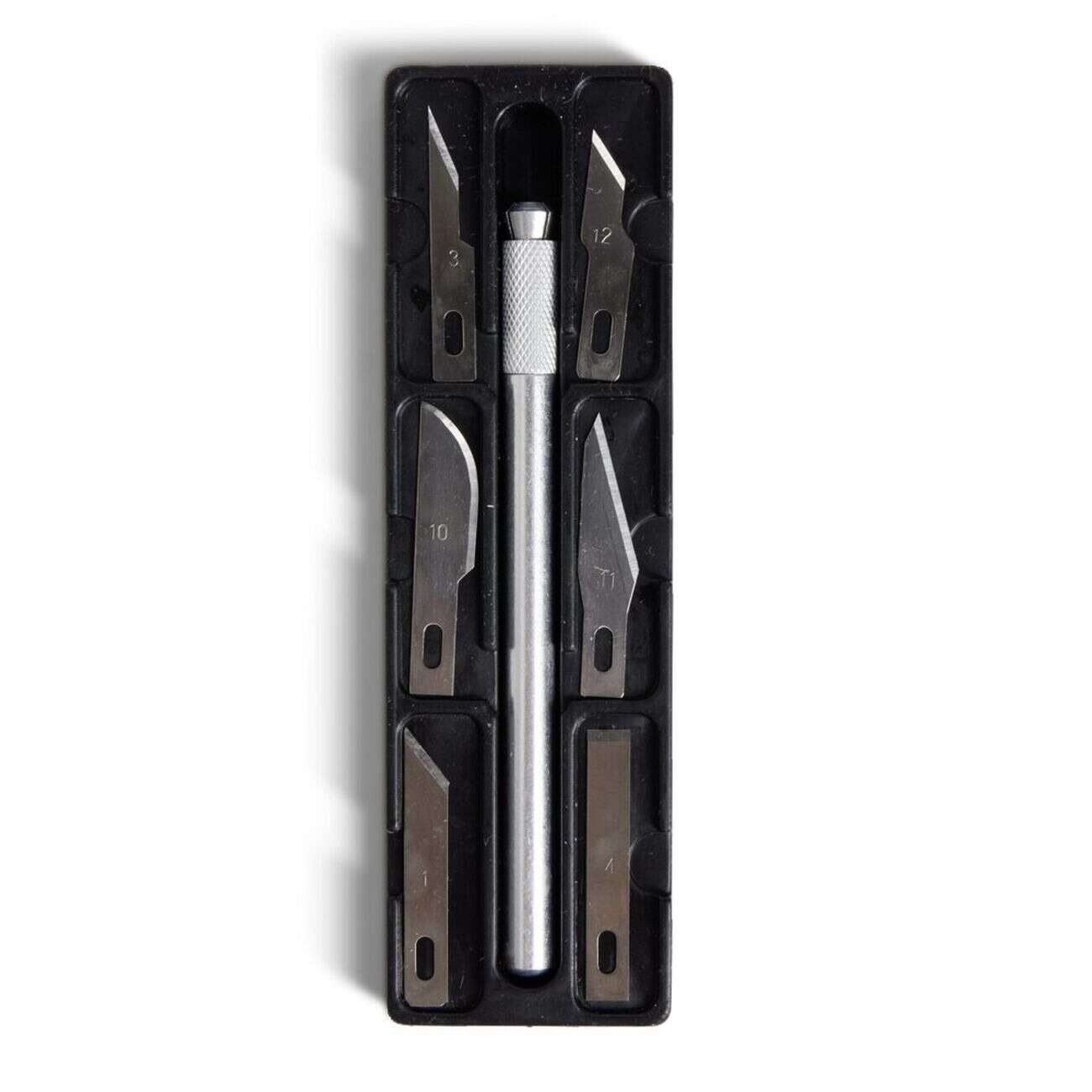 Cutter de précision 7 lames incluses métal gris