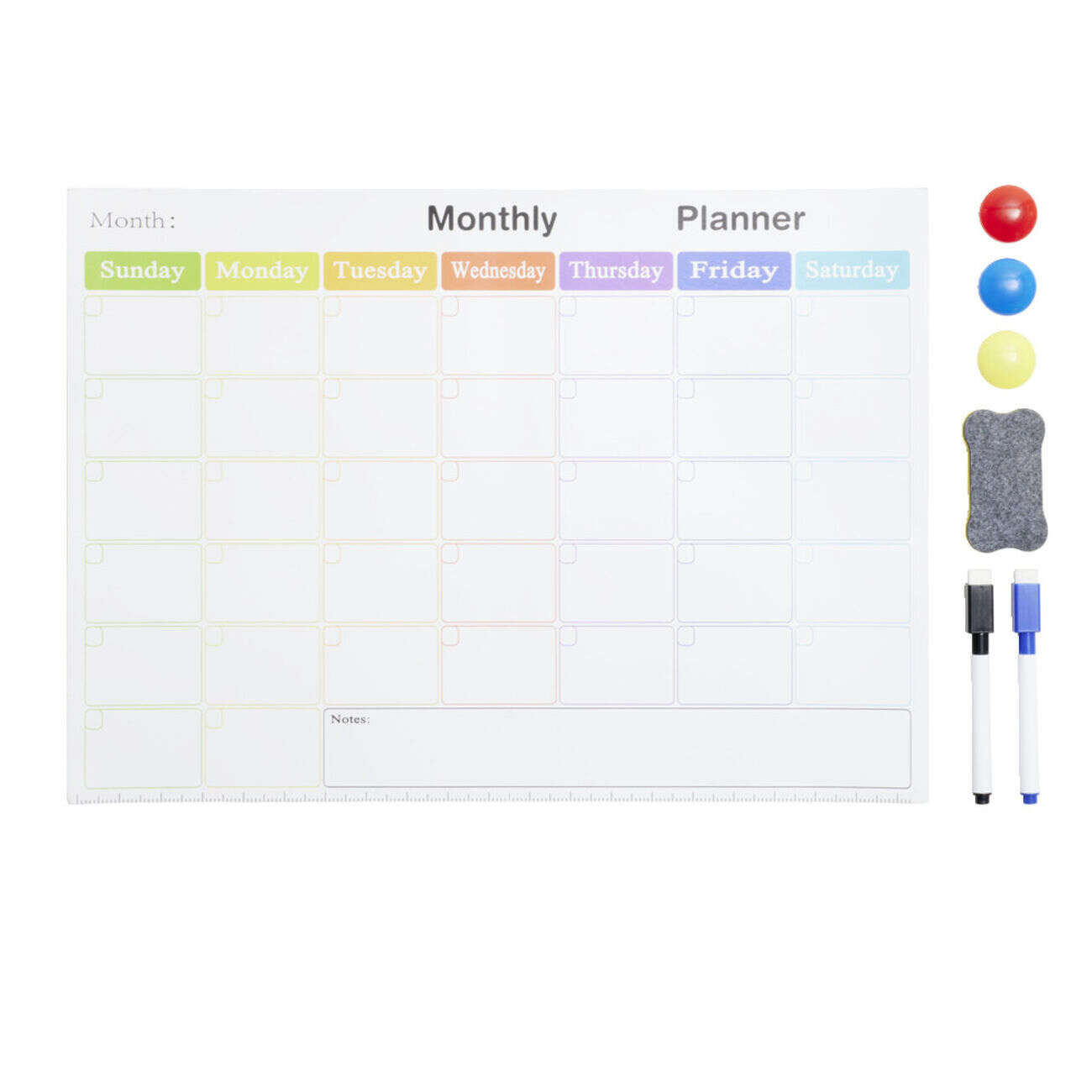 Calendrier mensuel magnétique et 7 accessoires 42x30cm