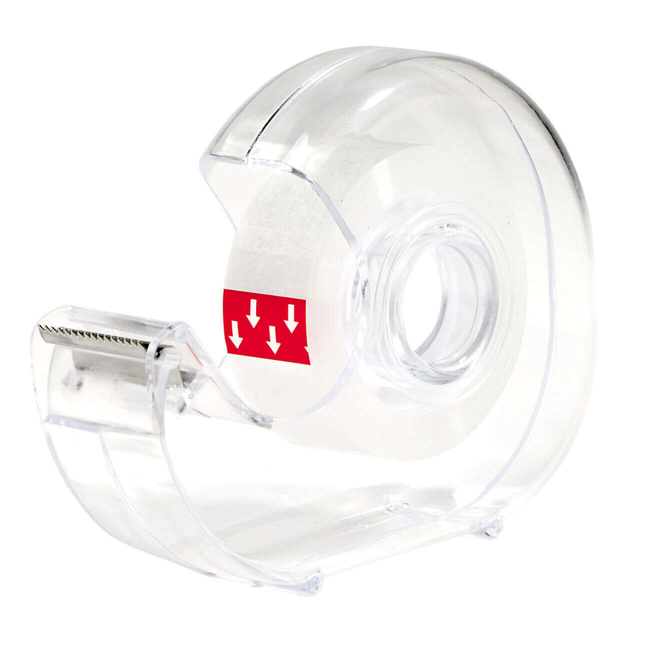 Rouleau adhésif avec dévidoir plastique transparent