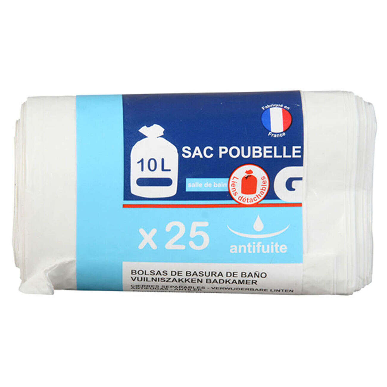 Sac poubelle salle de bain lien détachable 10L x25
