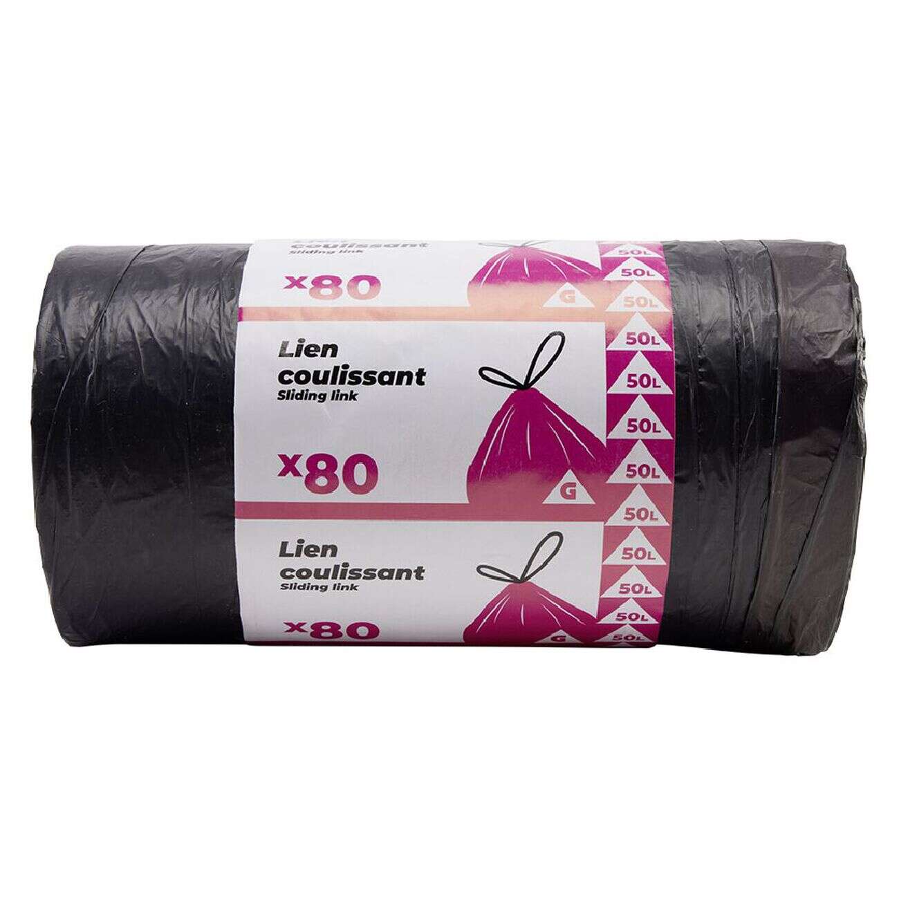 Sac poubelle noir lien coulissant 50L x80