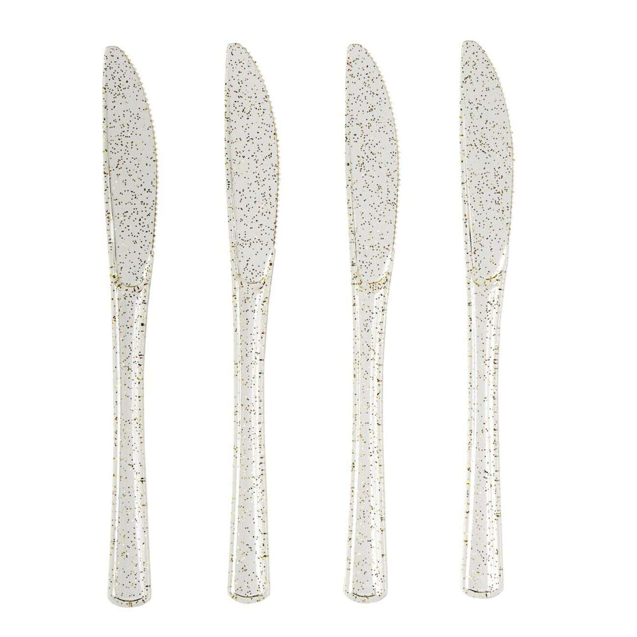 Couteau plastique réutilisable x4 pailleté doré L17cm