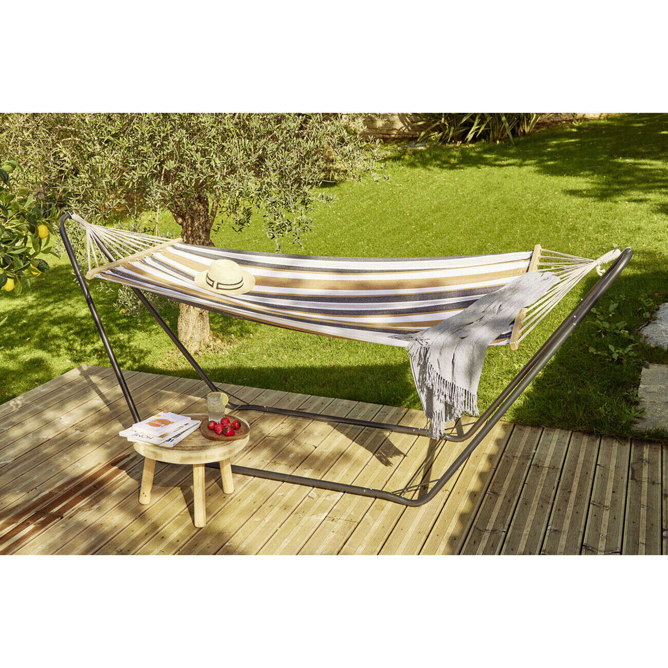 Hamac 1 personne 100x200cm avec support métal 297x113xH82cm