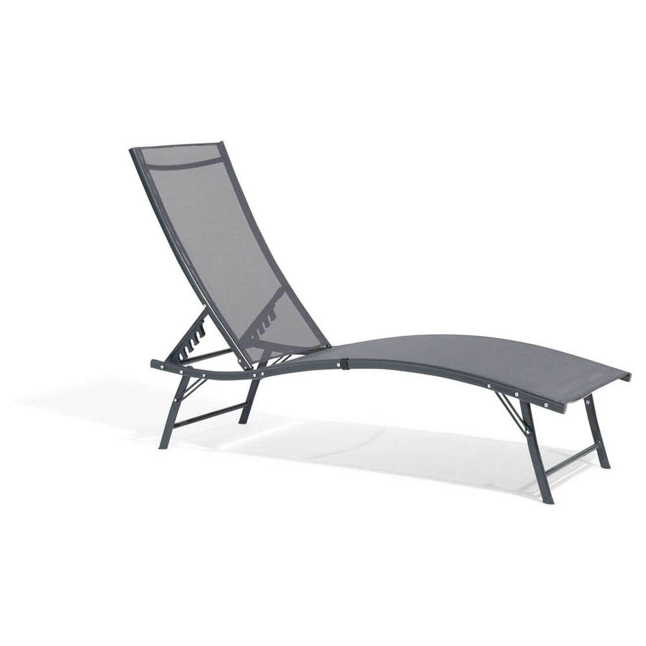 Bain de soleil Bahia pliant 5 positions gris 182x55xH34-92cm