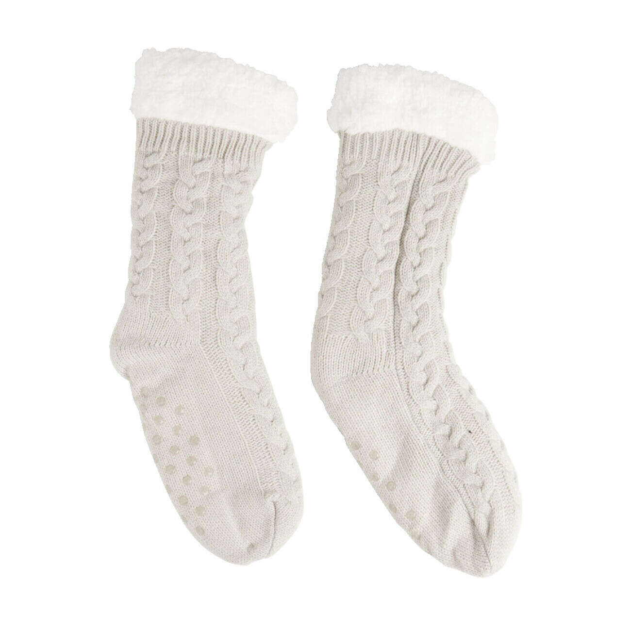 Chaussettes d'intérieur doublées peluche gris TU