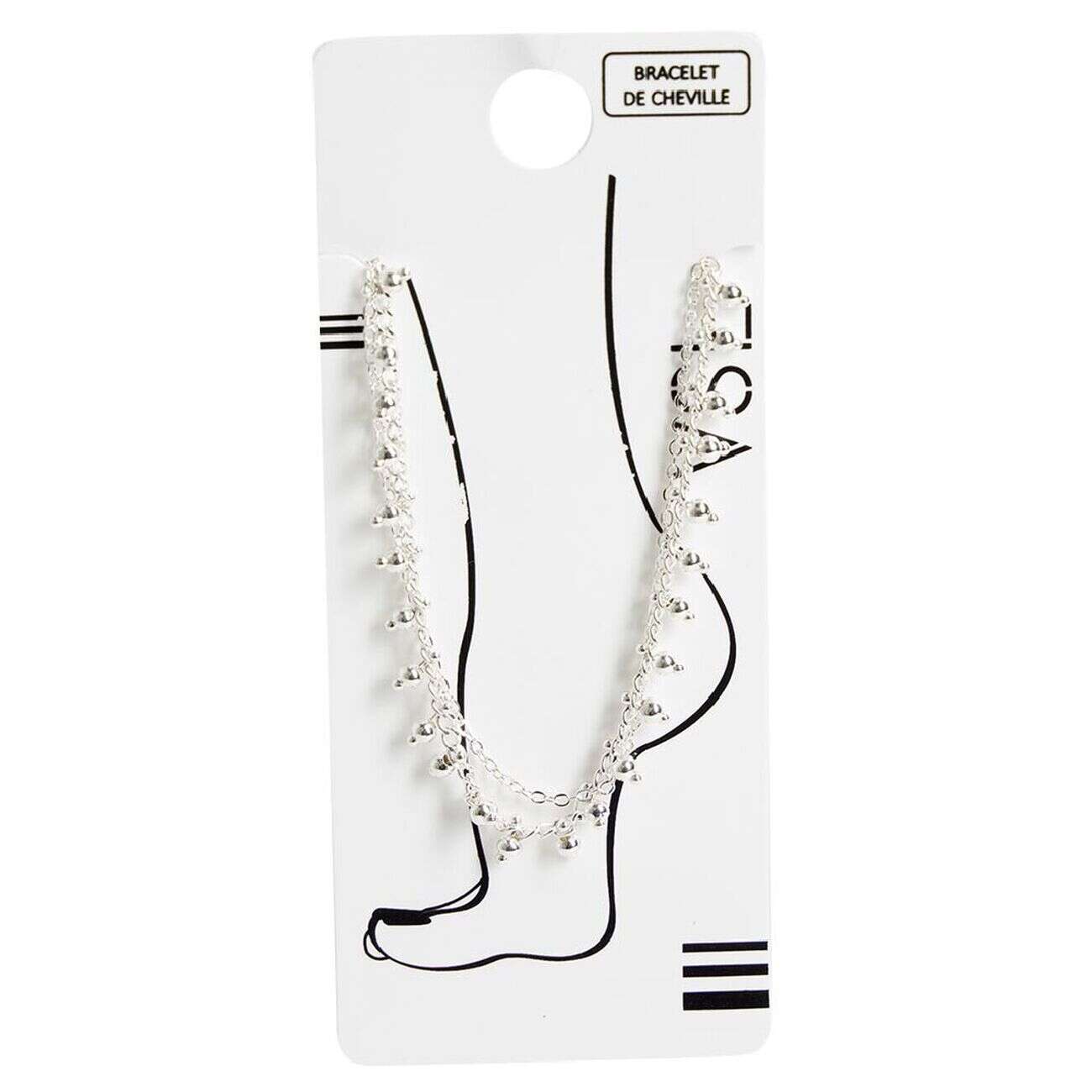Chaîne de cheville 2 rangs maille fine et perles argenté