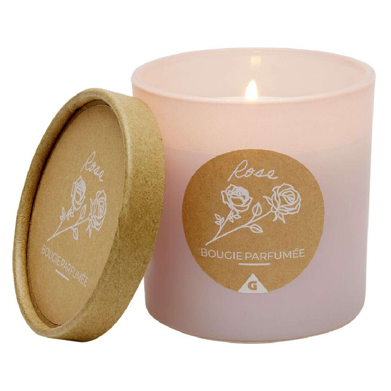 Bougie dans pot rond avec couvercle kraft senteur rose