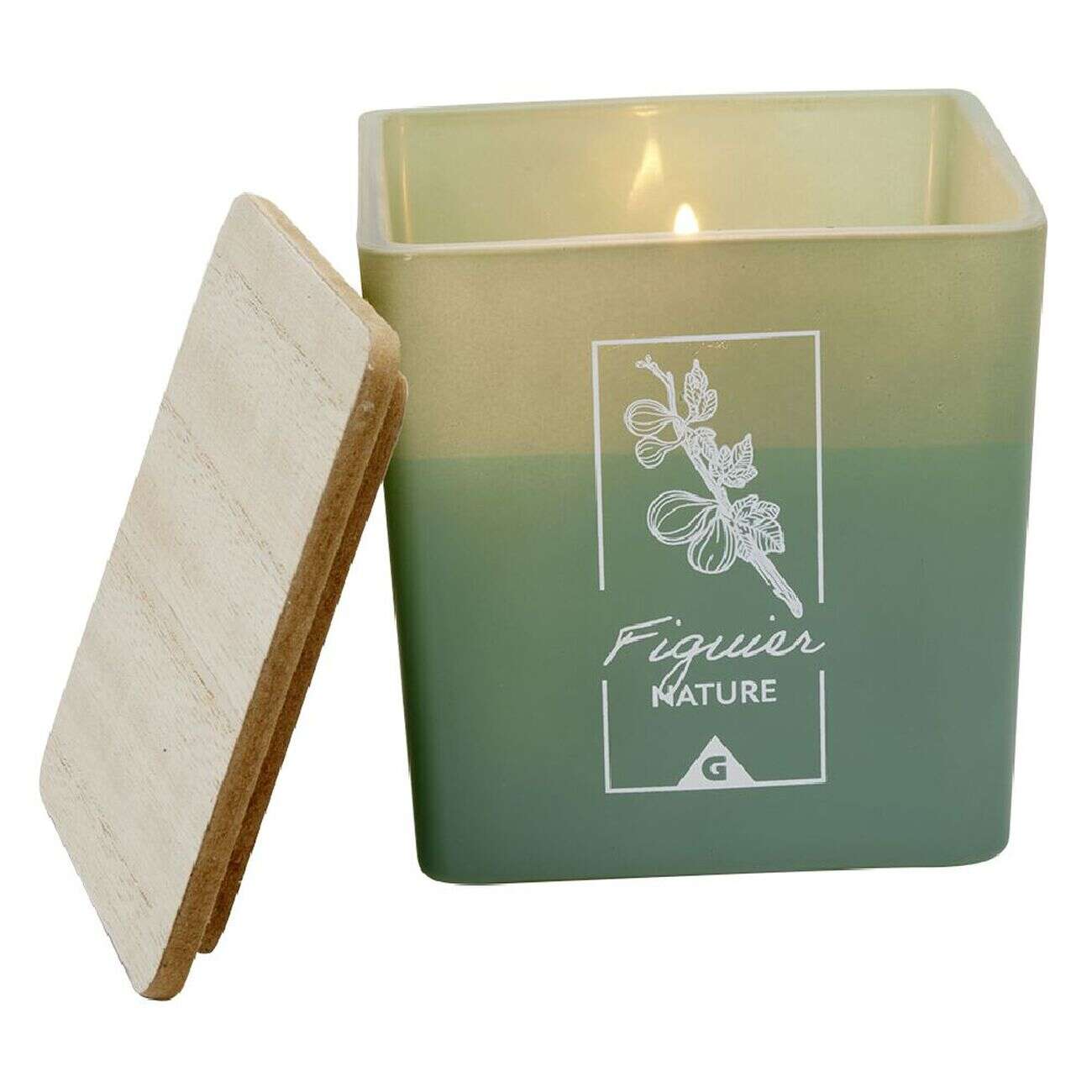Bougie dans pot carré avec couvercle bois senteur figuier