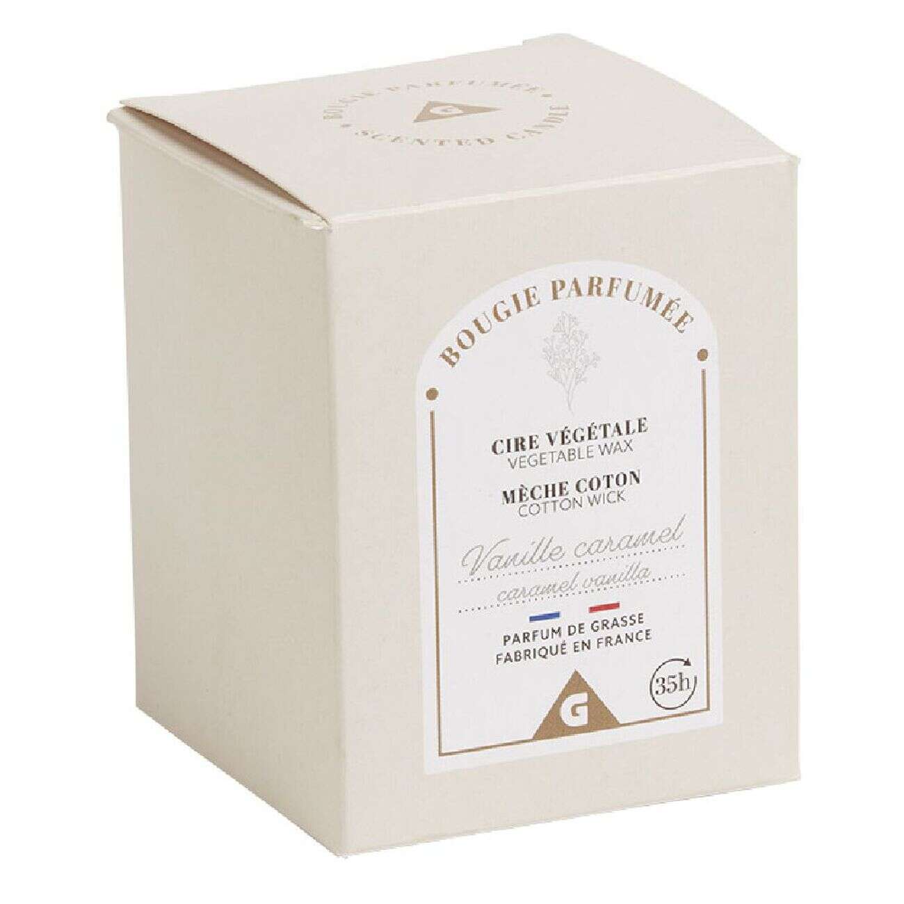Bougie blanc ivoire dans verre senteur vanille Ø7xH8cm