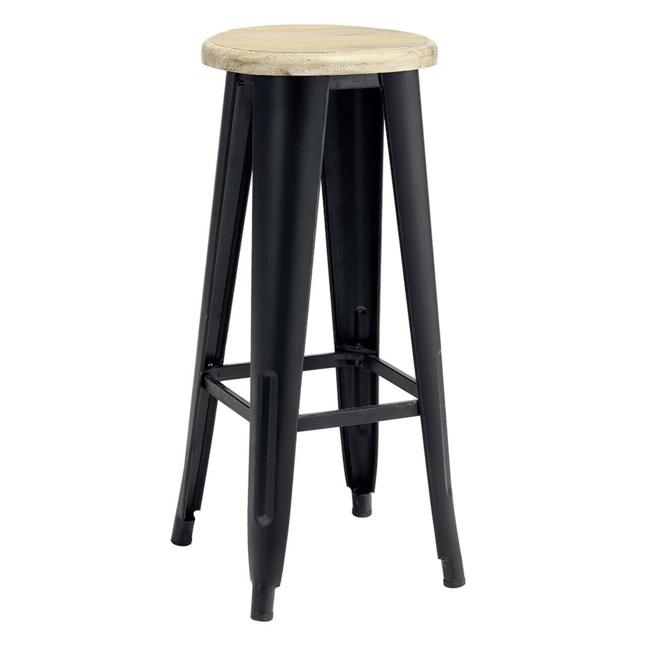 Tabouret métal et bois New York noir et naturel Ø30xH70cm