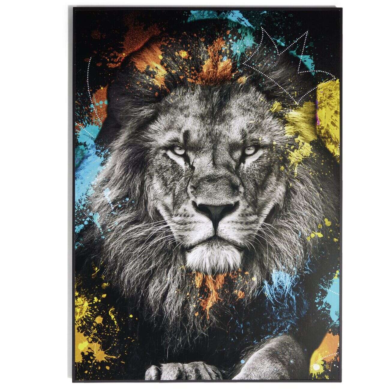 Cadre déco en bois colorful photo lion 50x70cm