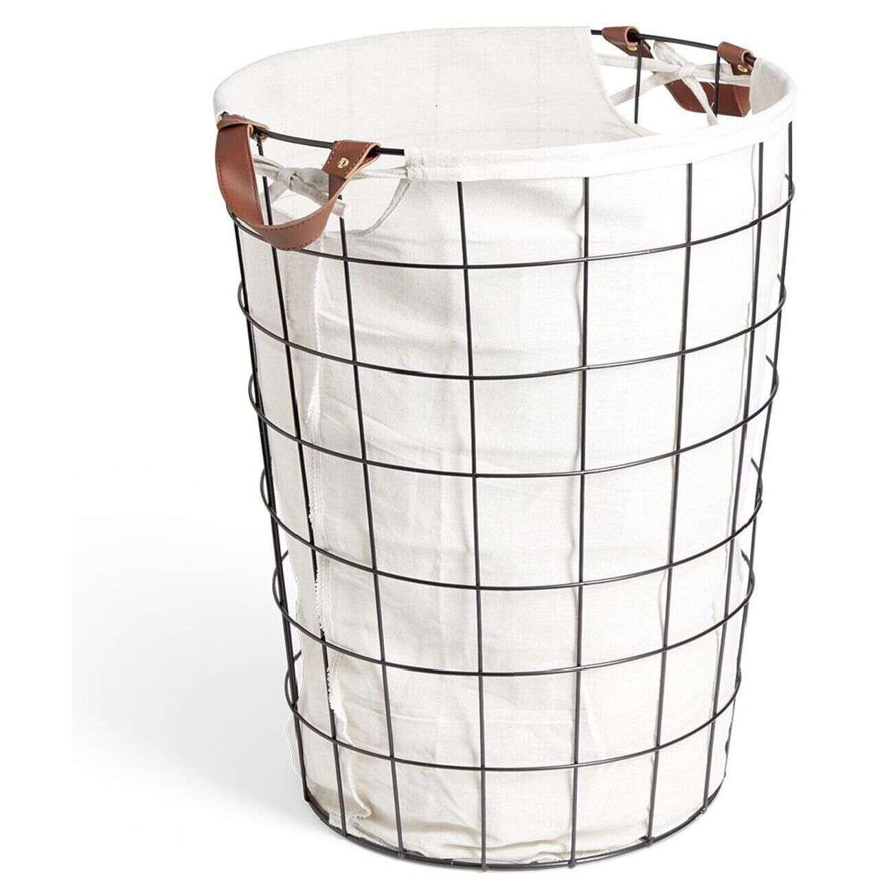 Panier à linge 48L métal noir et tissu blanc