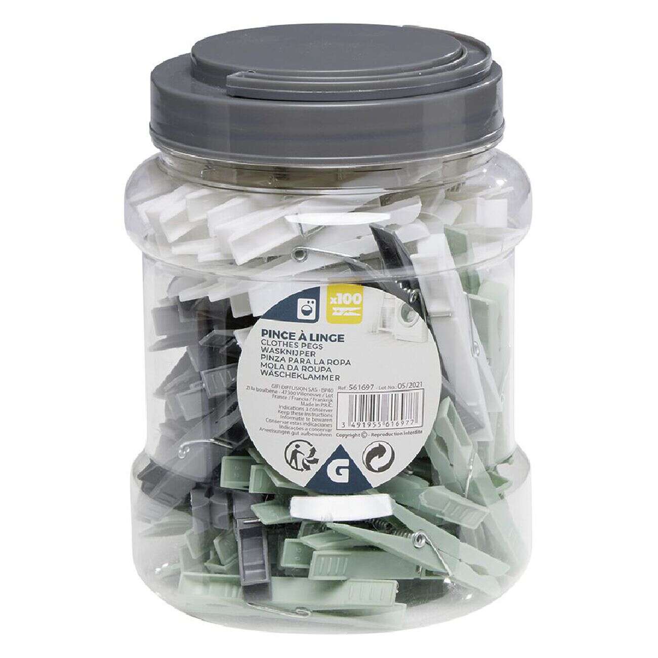 Pince à linge dans bocal plastique x100