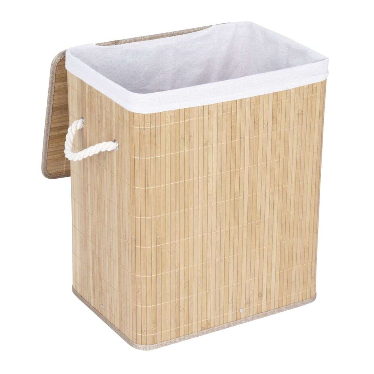 Coffre à linge 60L bambou et tissu blanc 41,5x30xH50cm