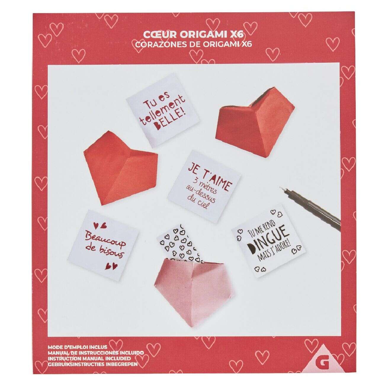 Kit origami 6 coeurs avec messages personnalisés