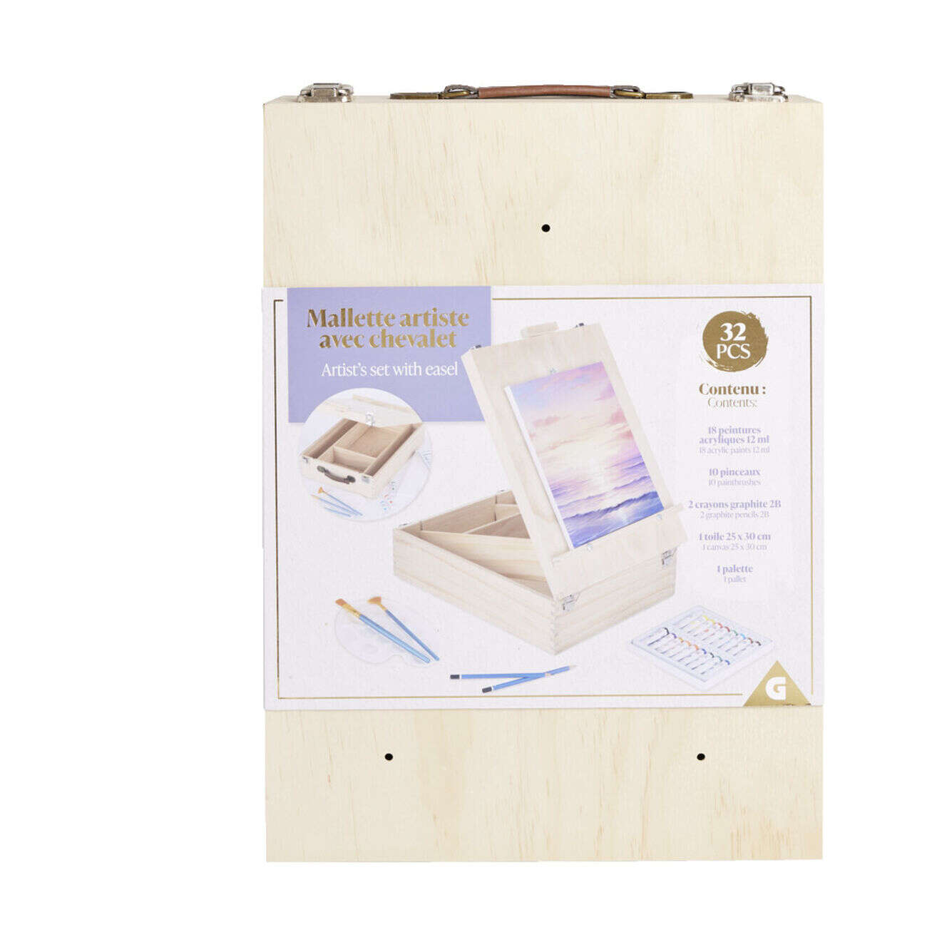 Mallette artiste chevalet en bois avec accessoires peinture