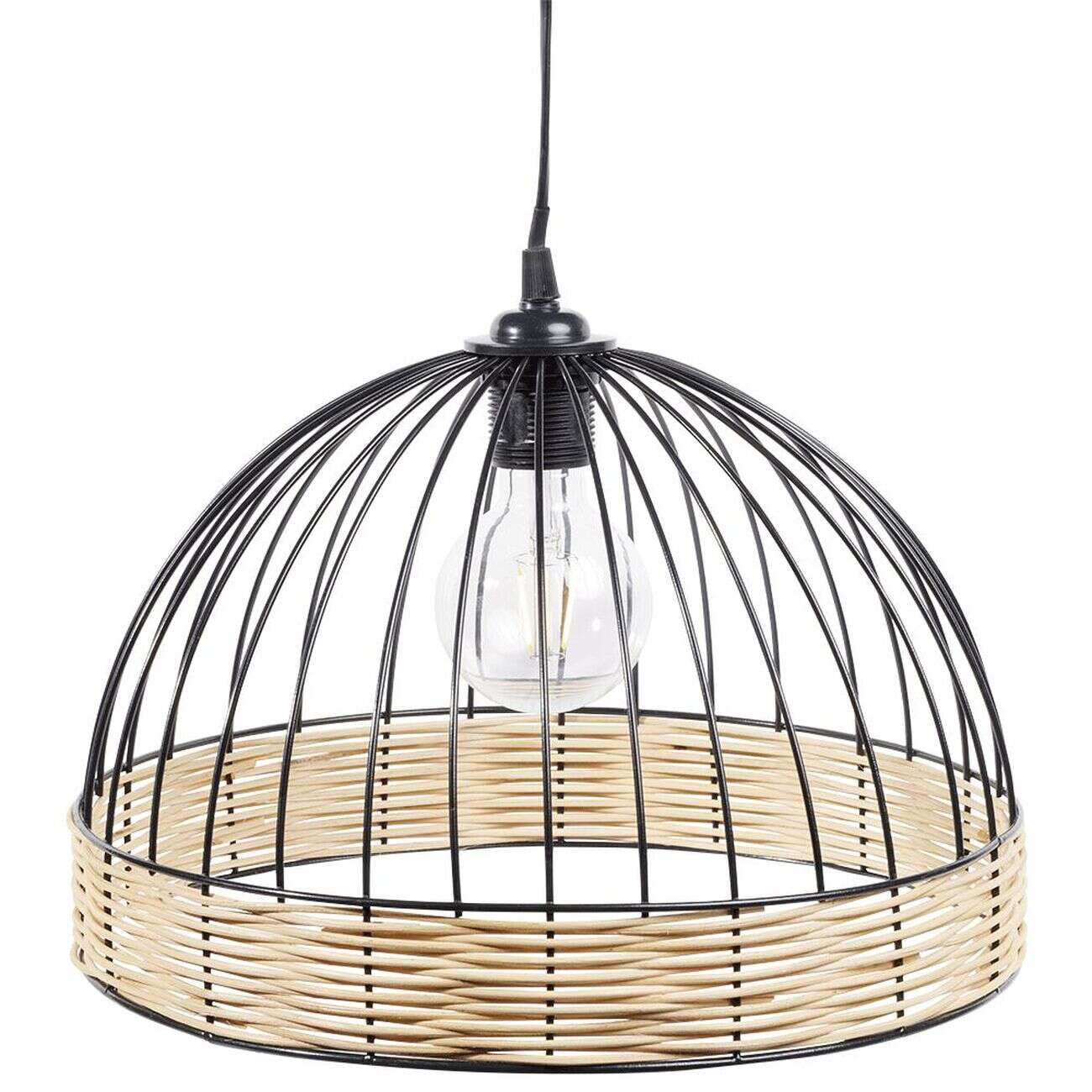 Suspension ronde métal osier noir et marron Ø35xH22cm