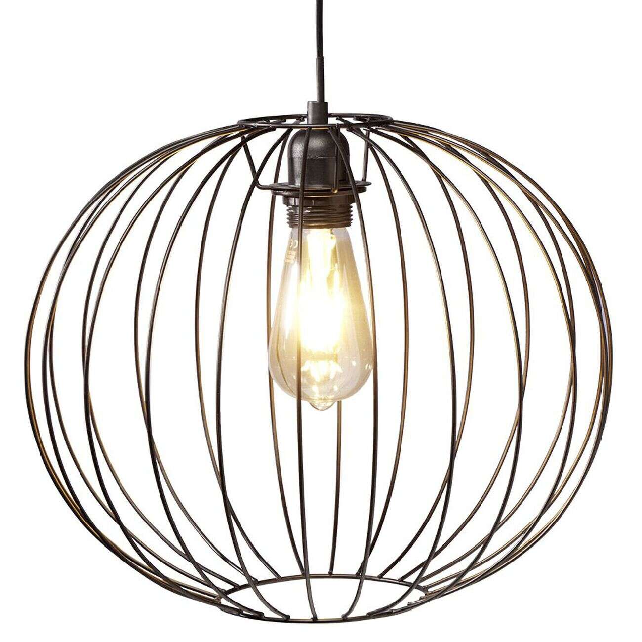 Luminaire à suspension filaire ronde métal noir Ø35cm