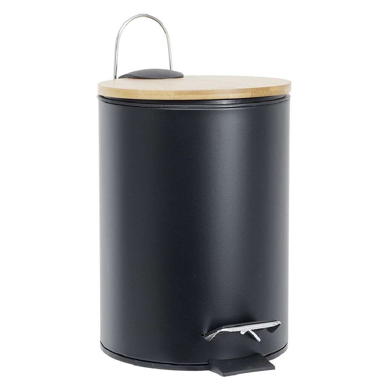 Poubelle salle de bain métal et bambou 3L noir