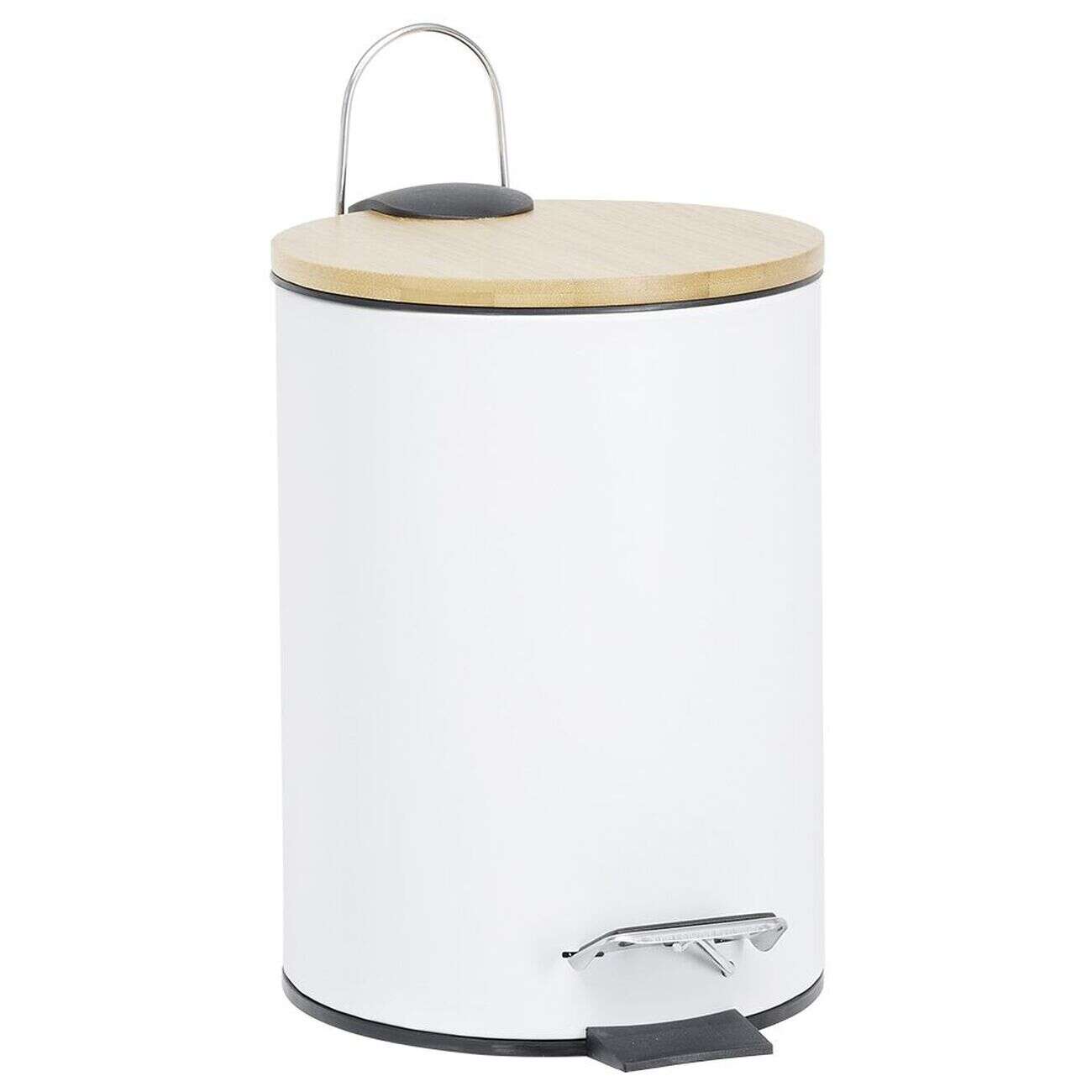 Poubelle salle de bain métal et bambou blanc
