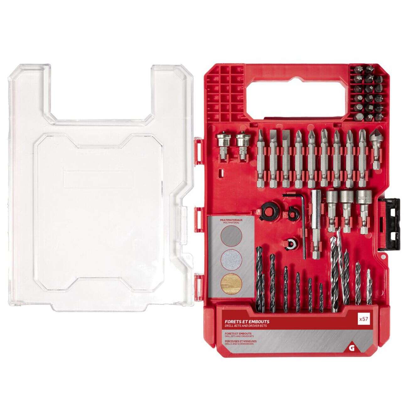 Forets et embouts en métal dans boîte plastique 57 pièces