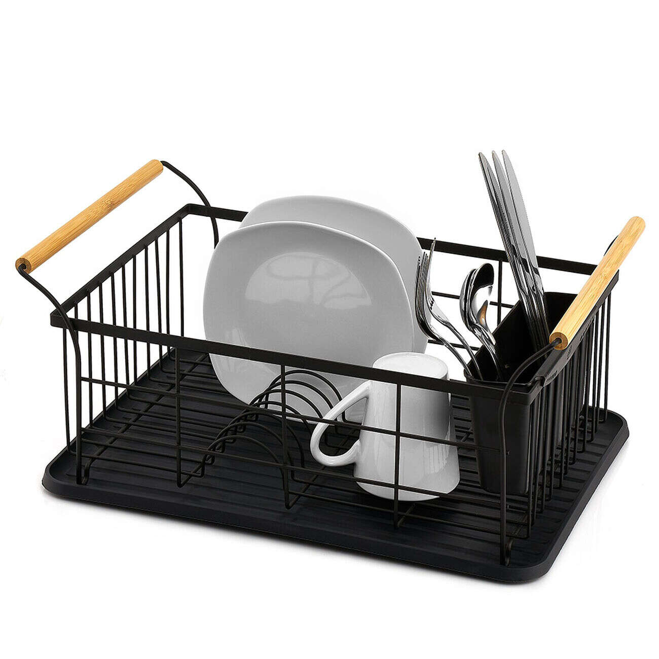 Égouttoir range-couverts poignées bambou plateau noir mat