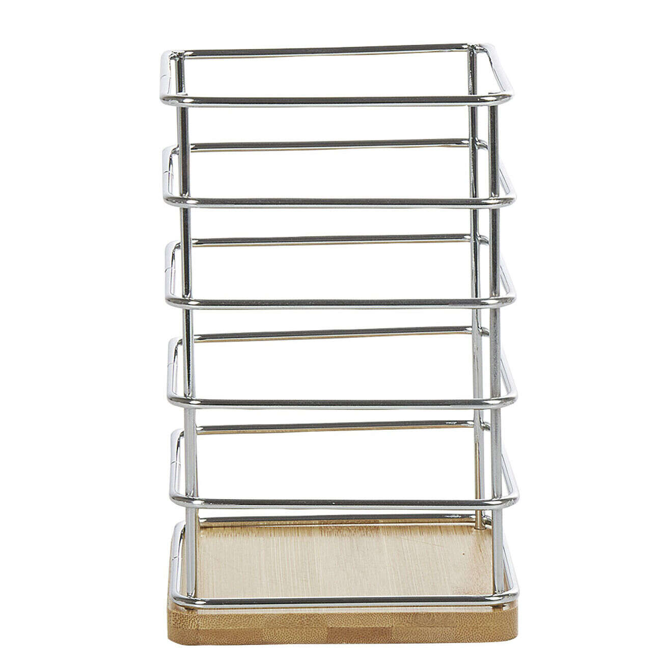 Porte ustensiles en métal avec socle en bambou