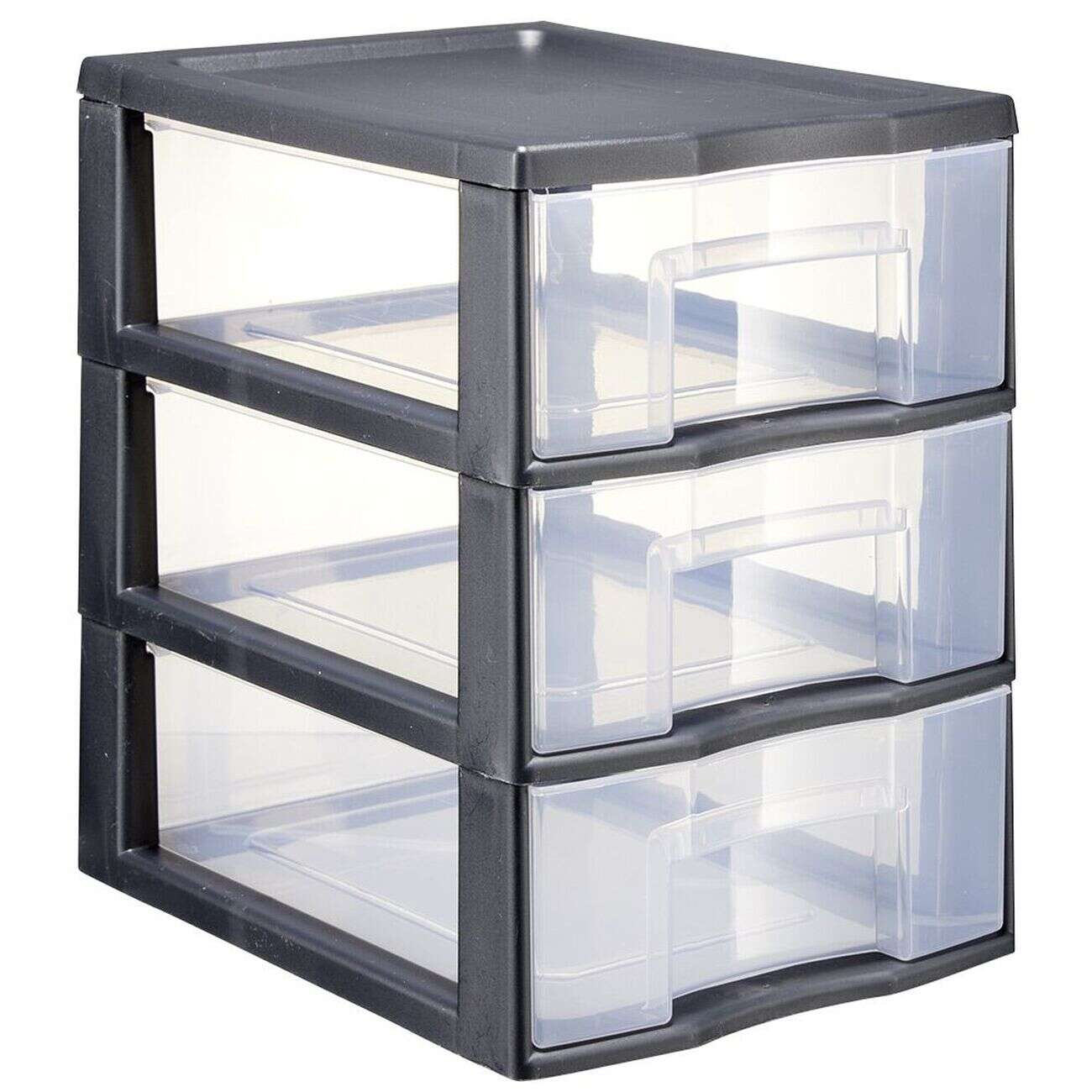 Tour de rangement A5 3 tiroirs noir et transparent 6 L