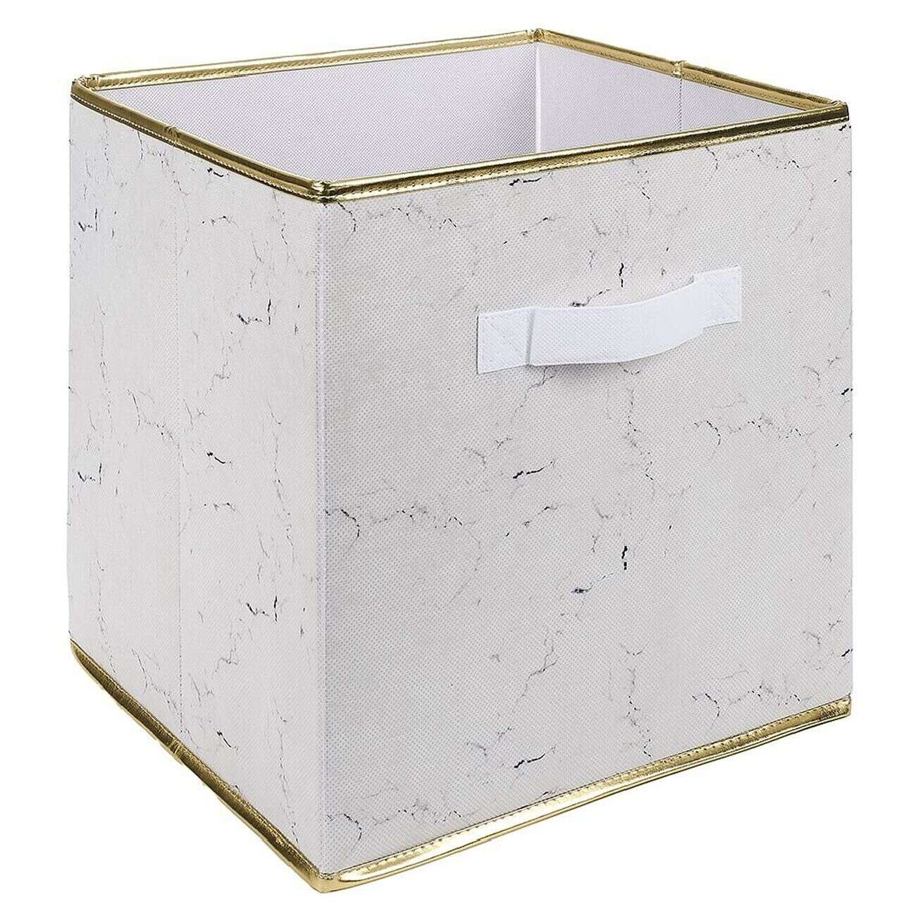 Panière Box Cube effet marbre 31x29x31cm blanc et doré
