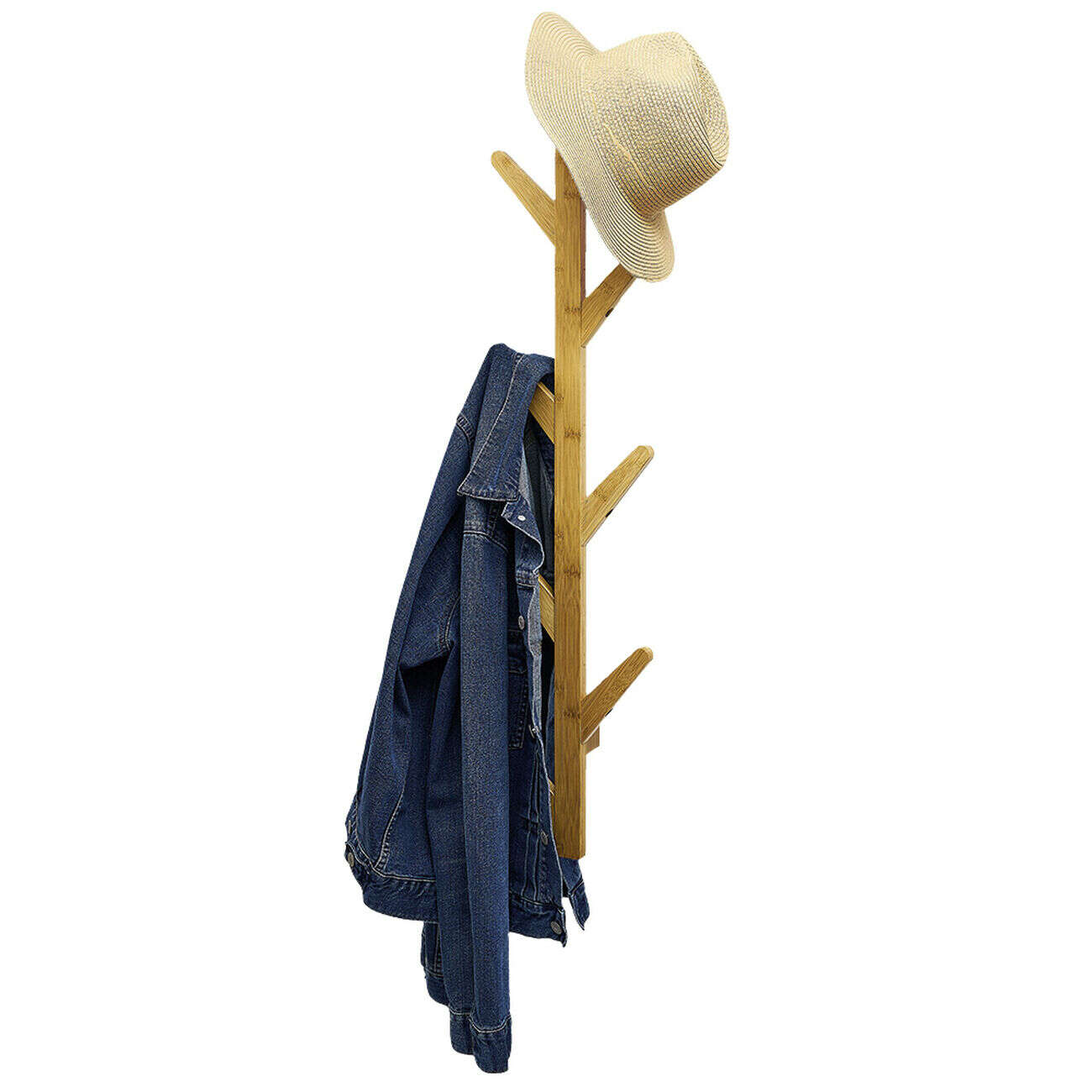 Porte manteau mural bambou 8 crochets 21x7xH98cm