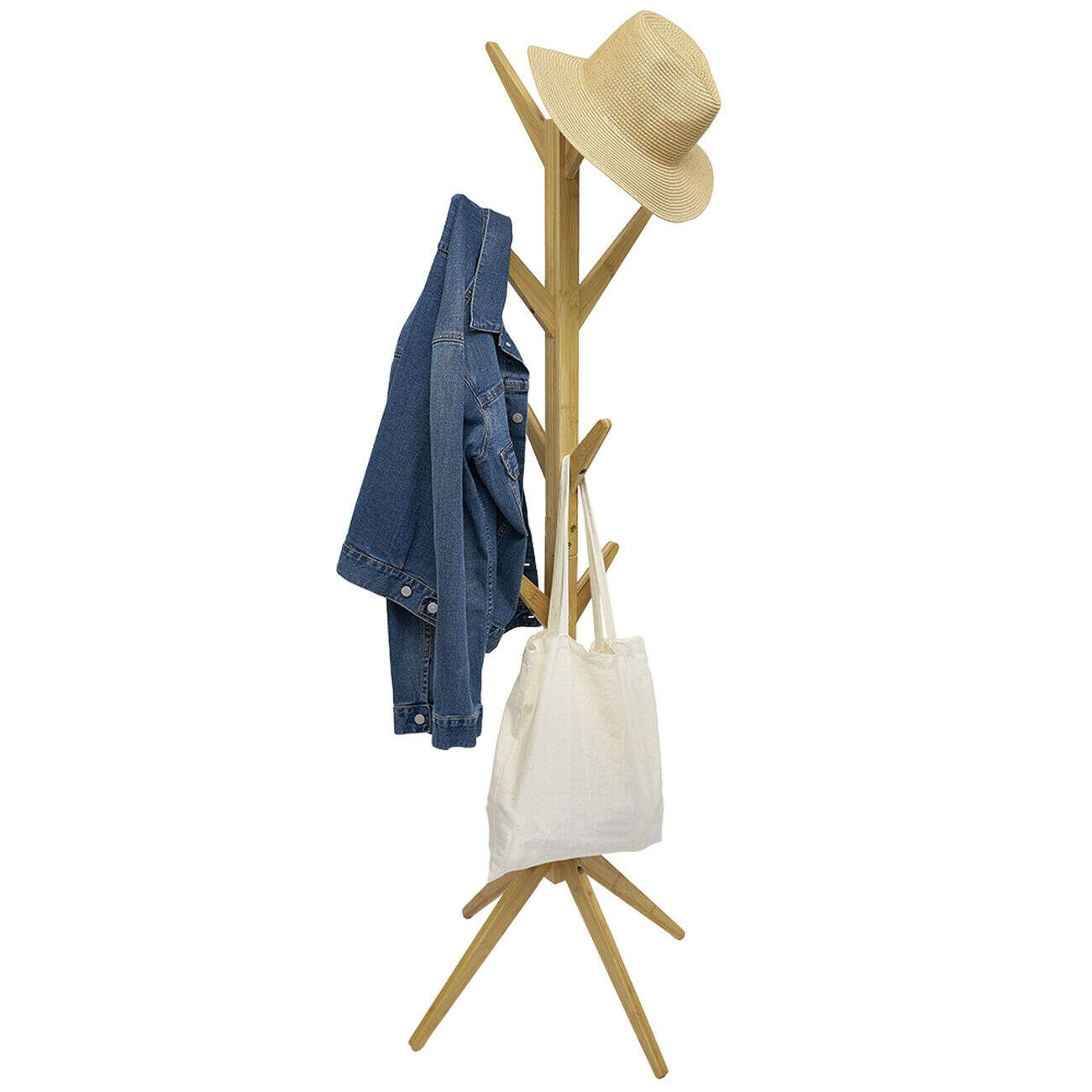 Porte manteau bambou 8 crochets 4 pieds 60x60xH167cm