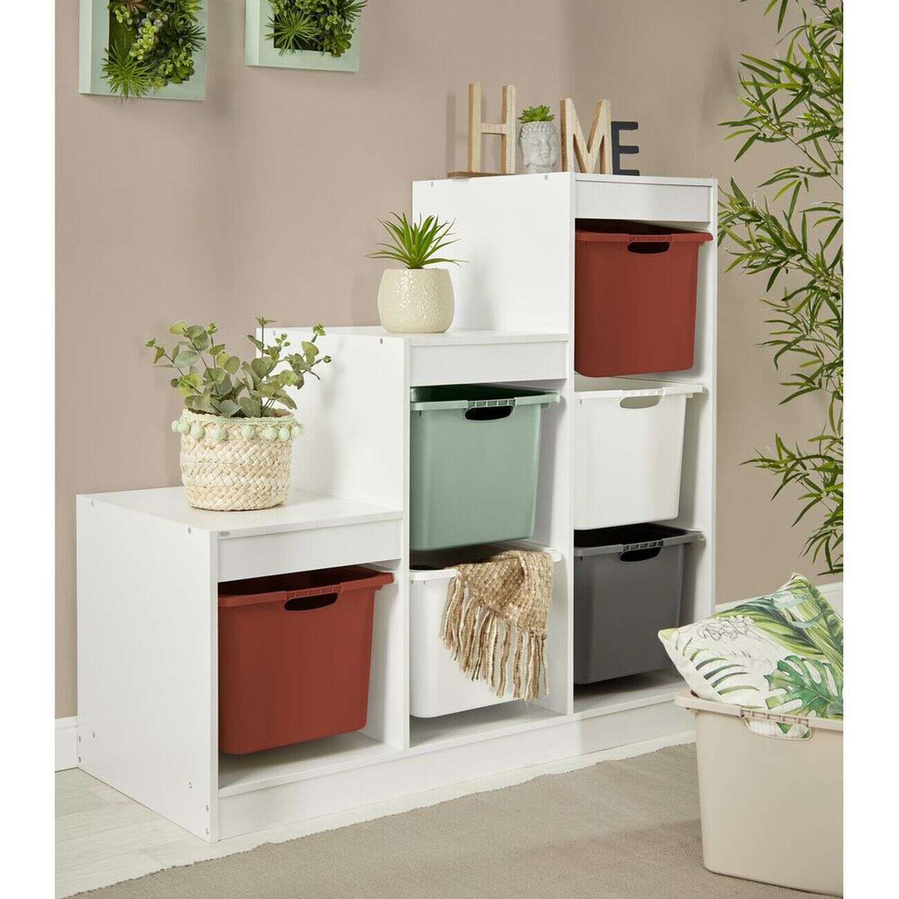 Meuble de rangement casiers escalier bois blanc