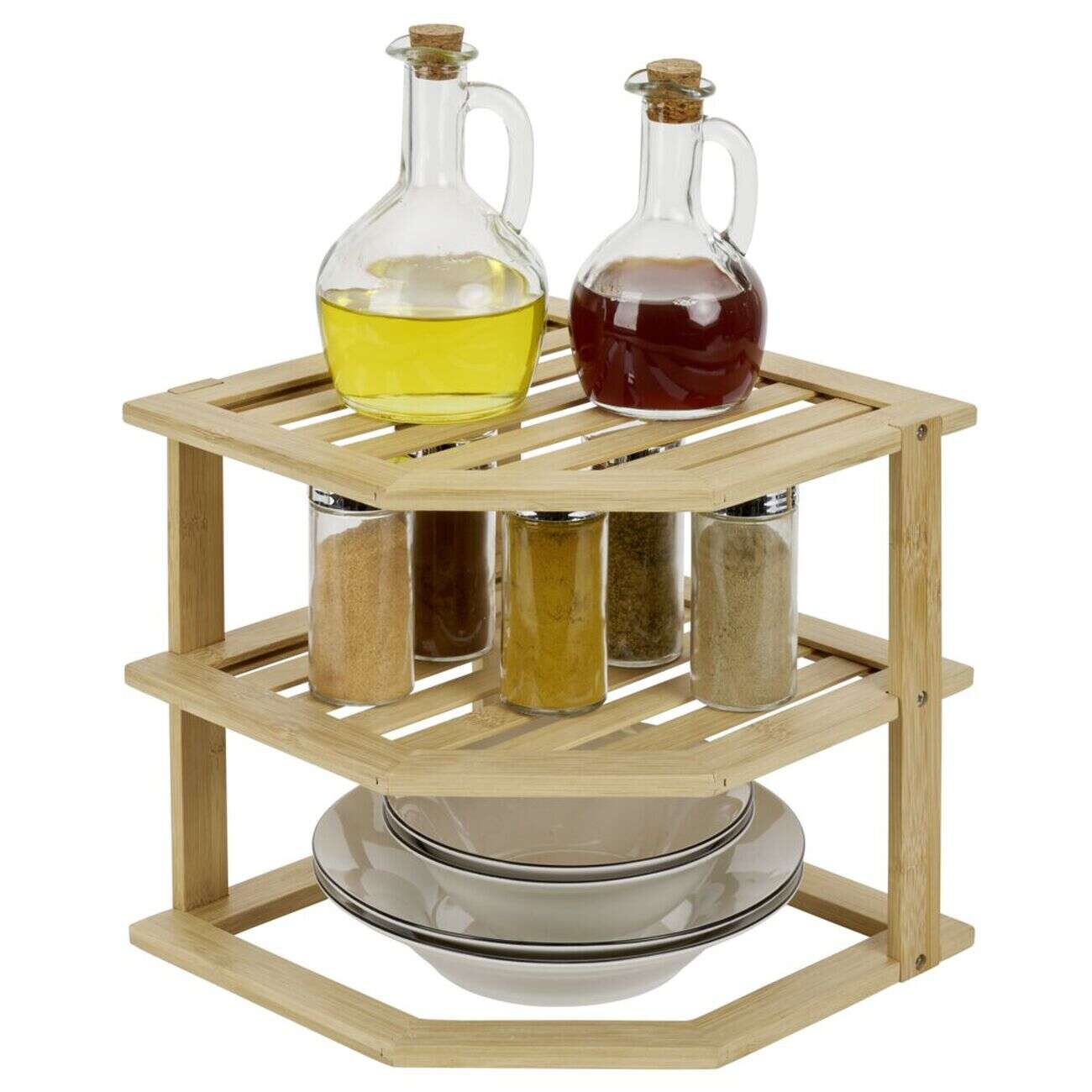 Étagère d'angle 2 niveaux en bambou 25x25xH23cm
