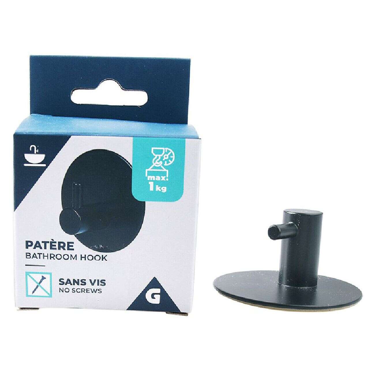 Crochet de salle bain noir à coller