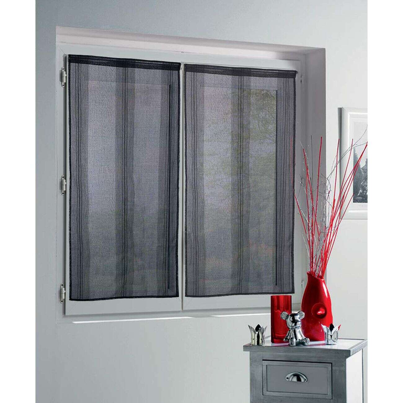 Vitrage droit passe tringle uni noir 60x90 cm x2